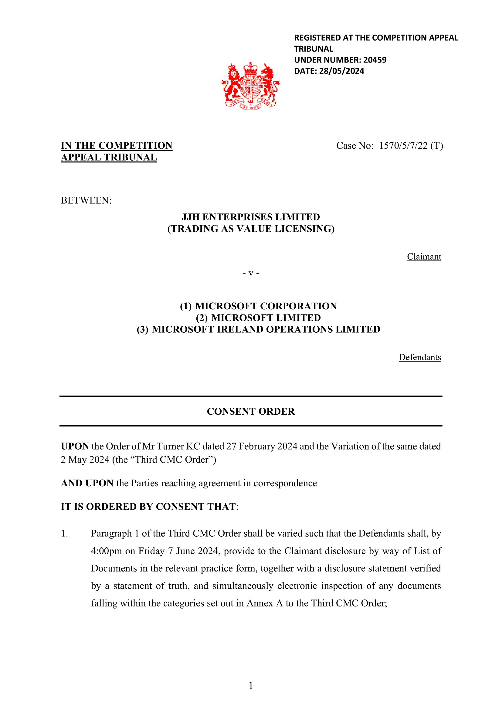 CAT - Consent Order variation to CMC3 - Case No: 1570/5/7/22 (T)