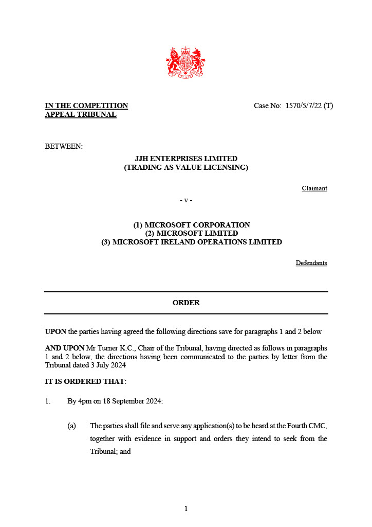 A fourth case management conference has been listed to commence at 10:30am on 20 November 2024, with a time estimate of three days. The CAT has now issued its directions ahead of the fourth CMC.
