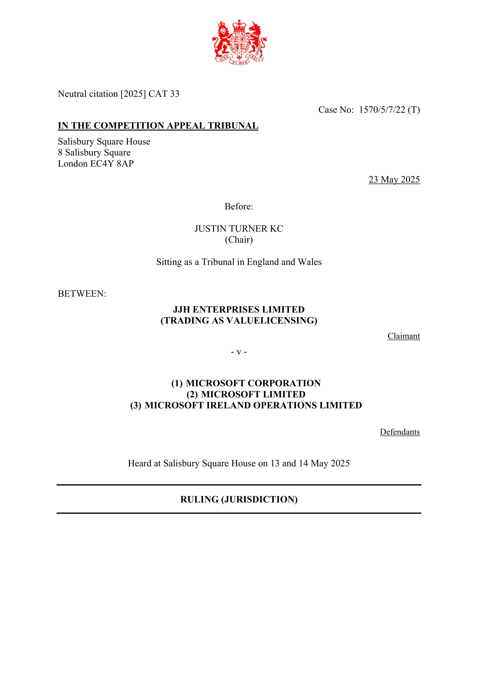 The Competition Appeal Tribunal ruled that it does have jurisdiction to evaluate key issues in ValueLicensing’s abuse of dominance claim.