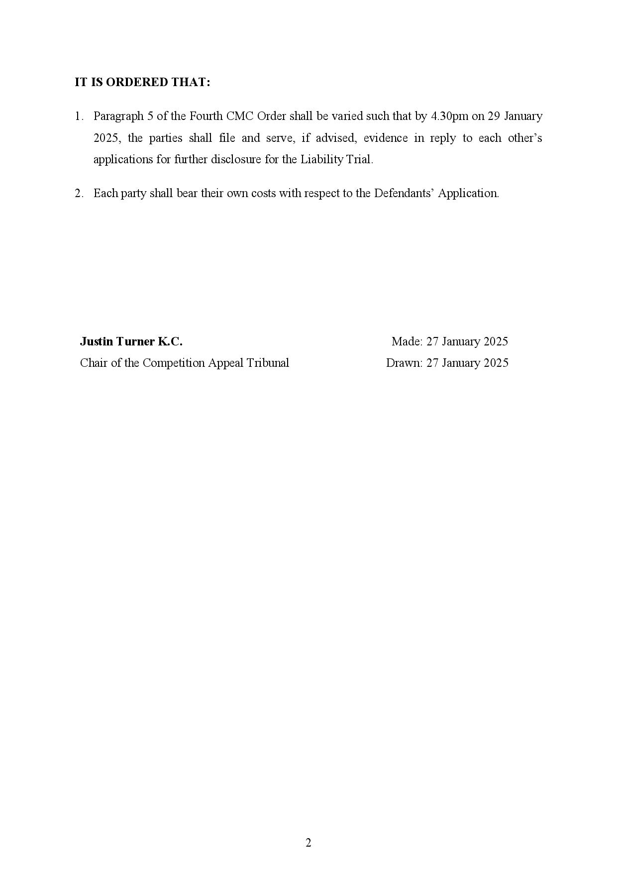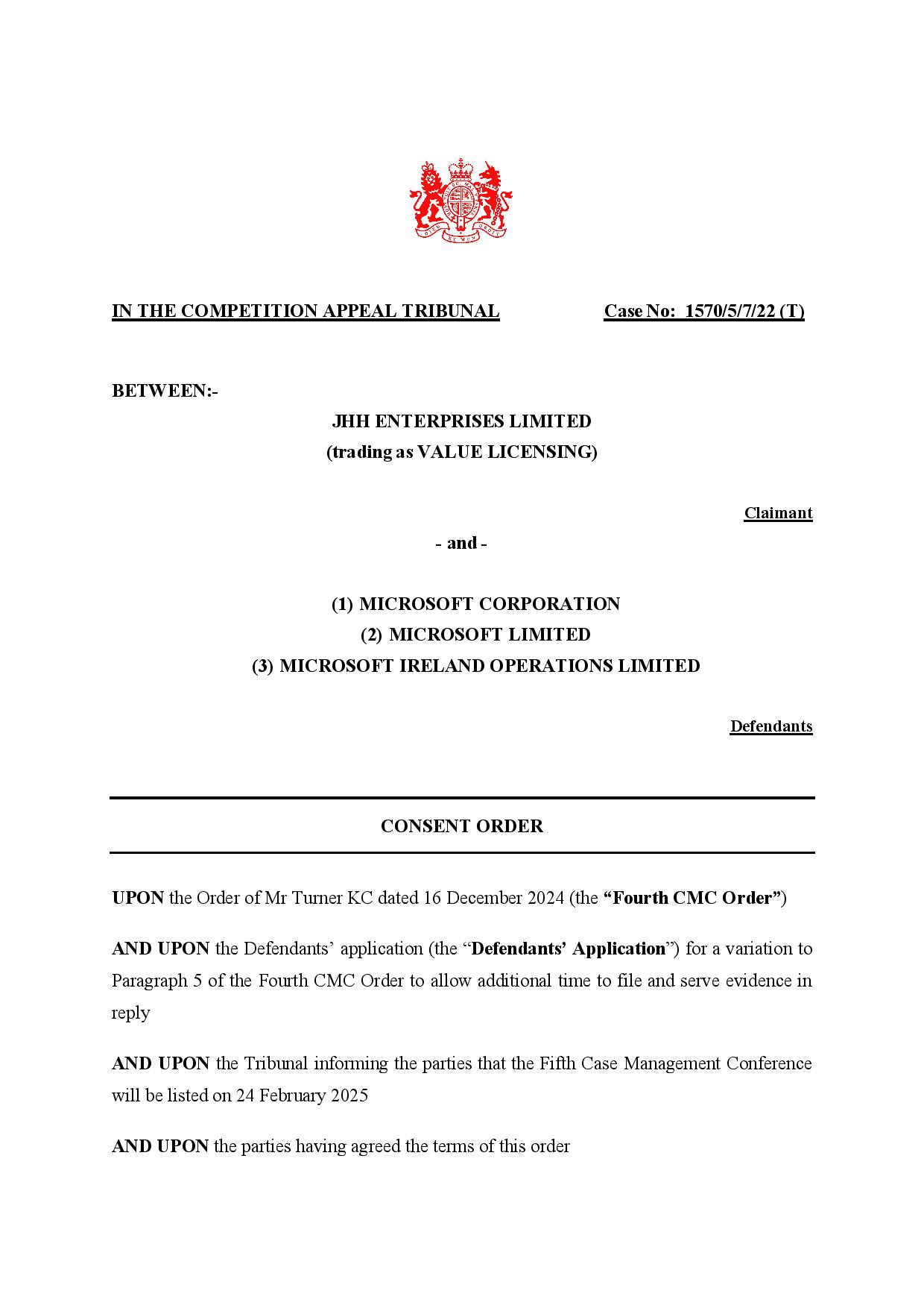 A fifth Case Management Conference will be listed on 24 February 2025. Microsoft have also been granted additional time to file and serve evidence in reply.