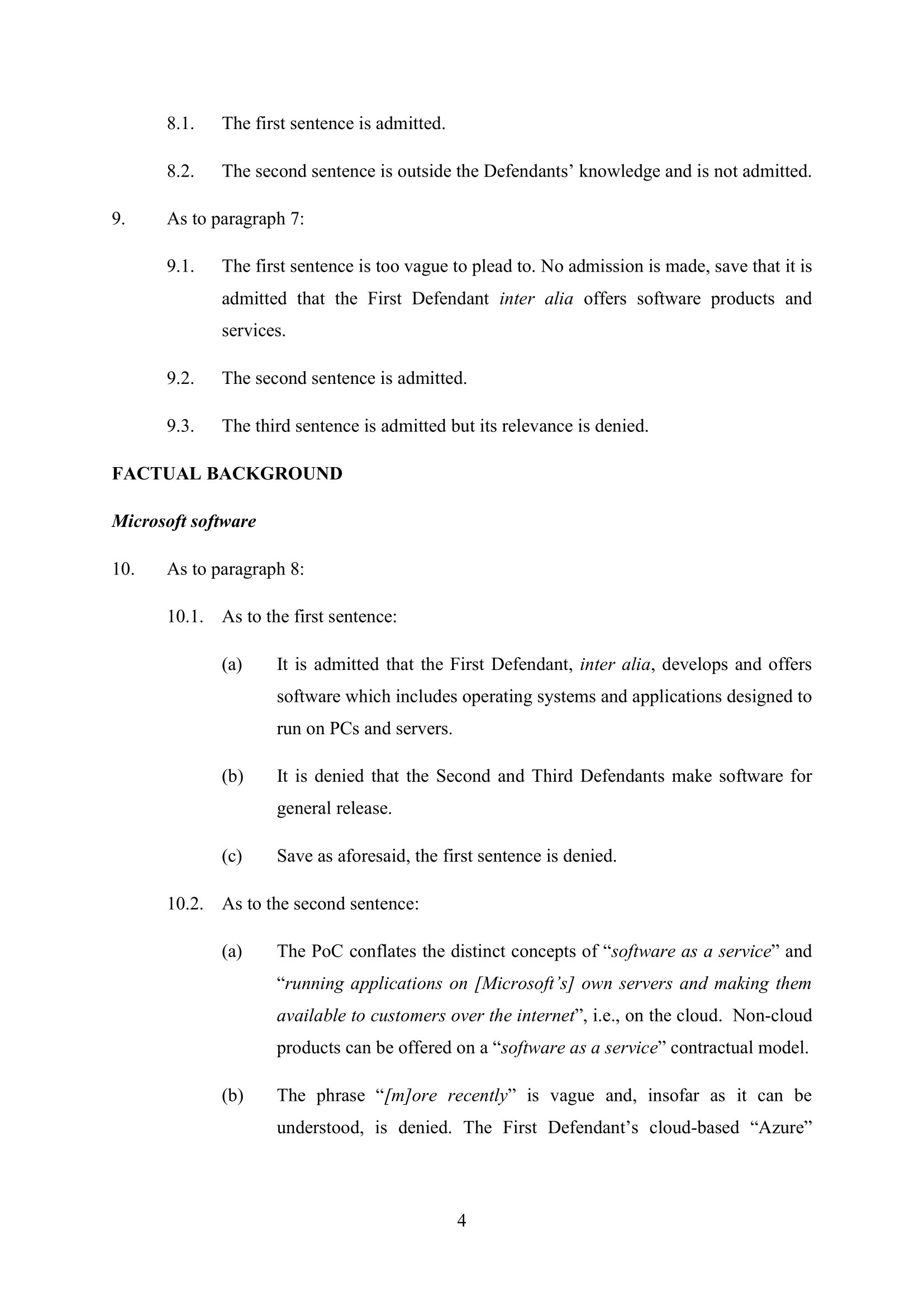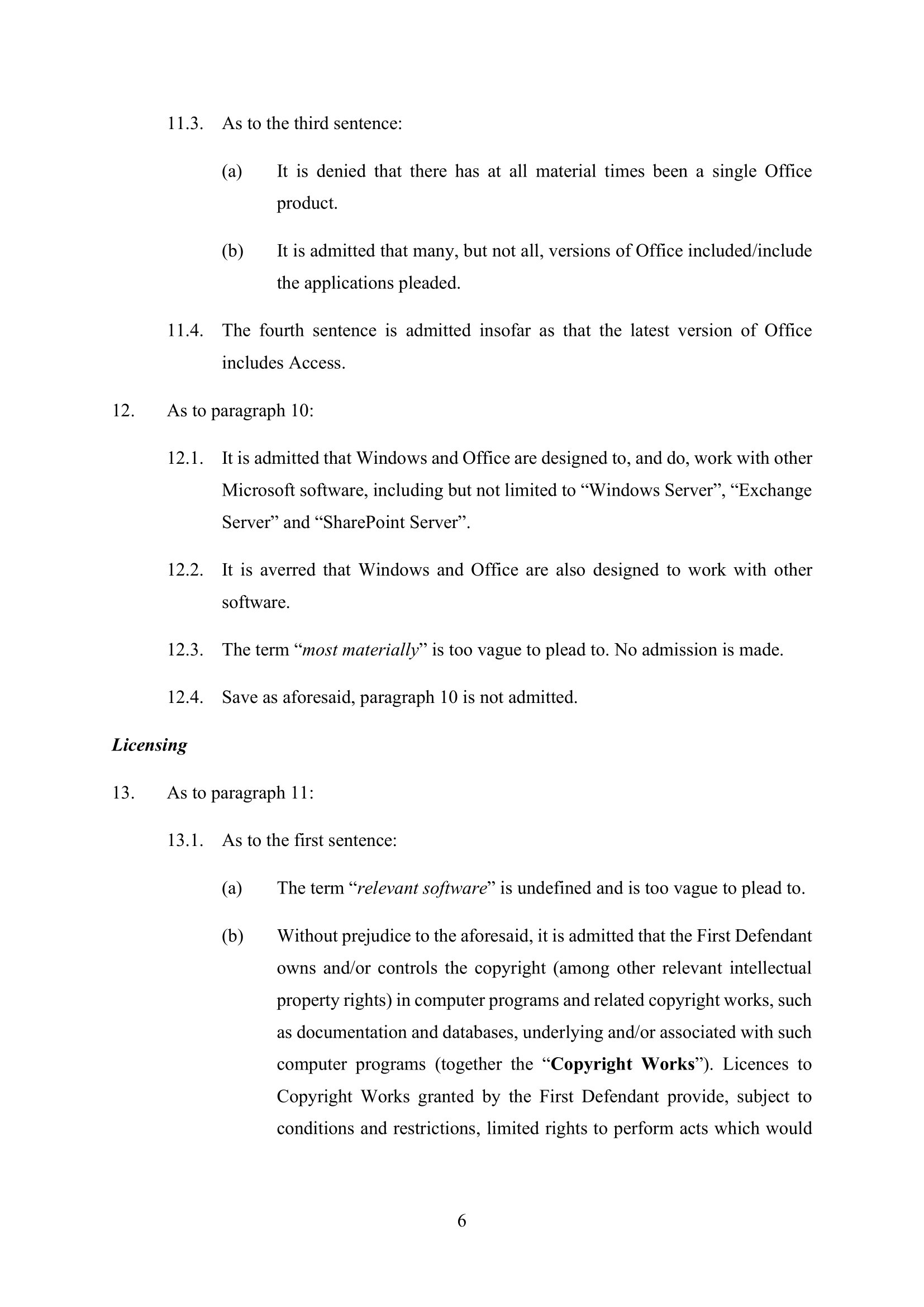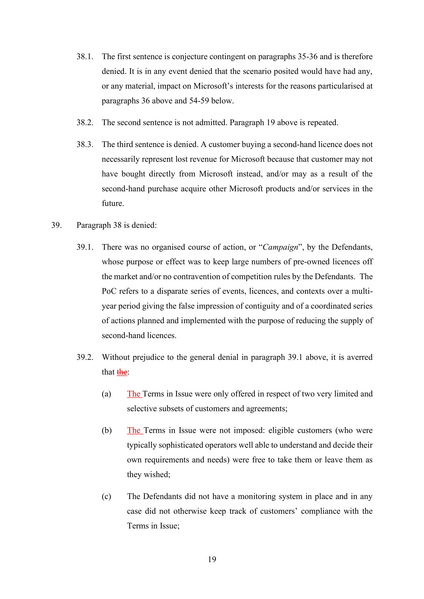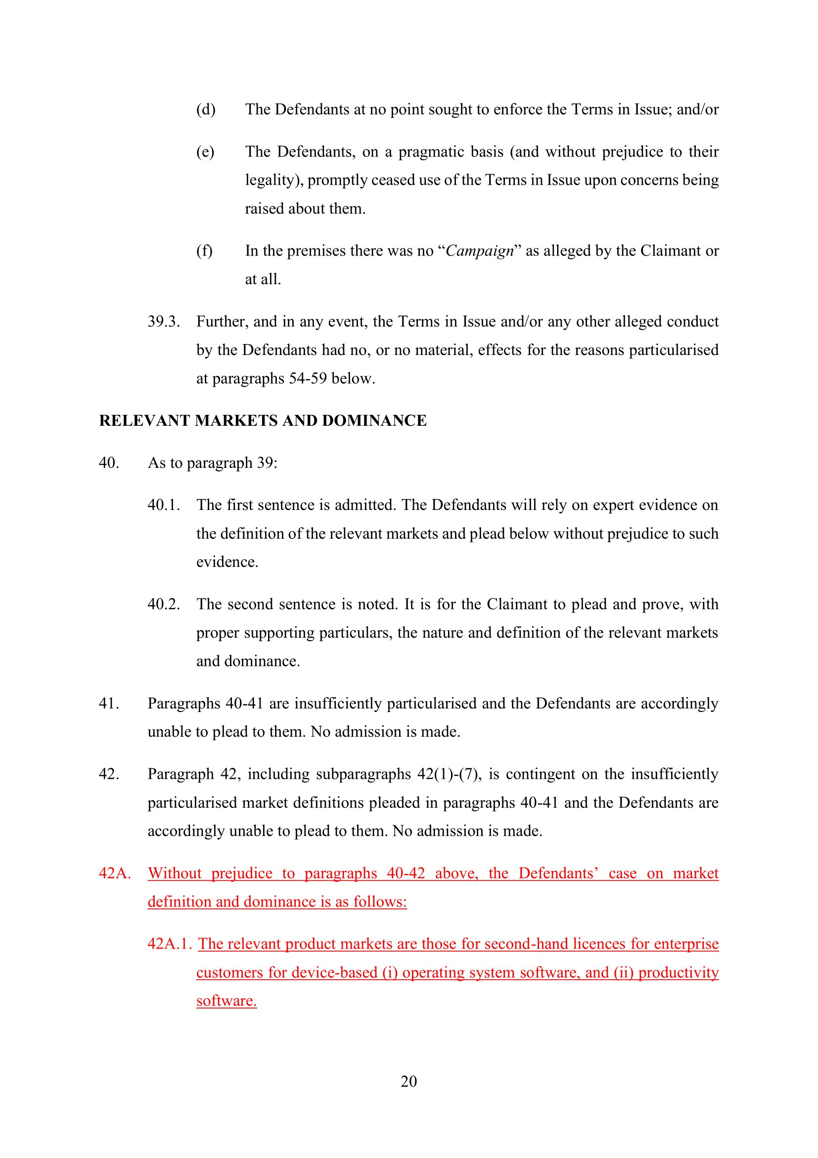 Microsoft Amended Defence