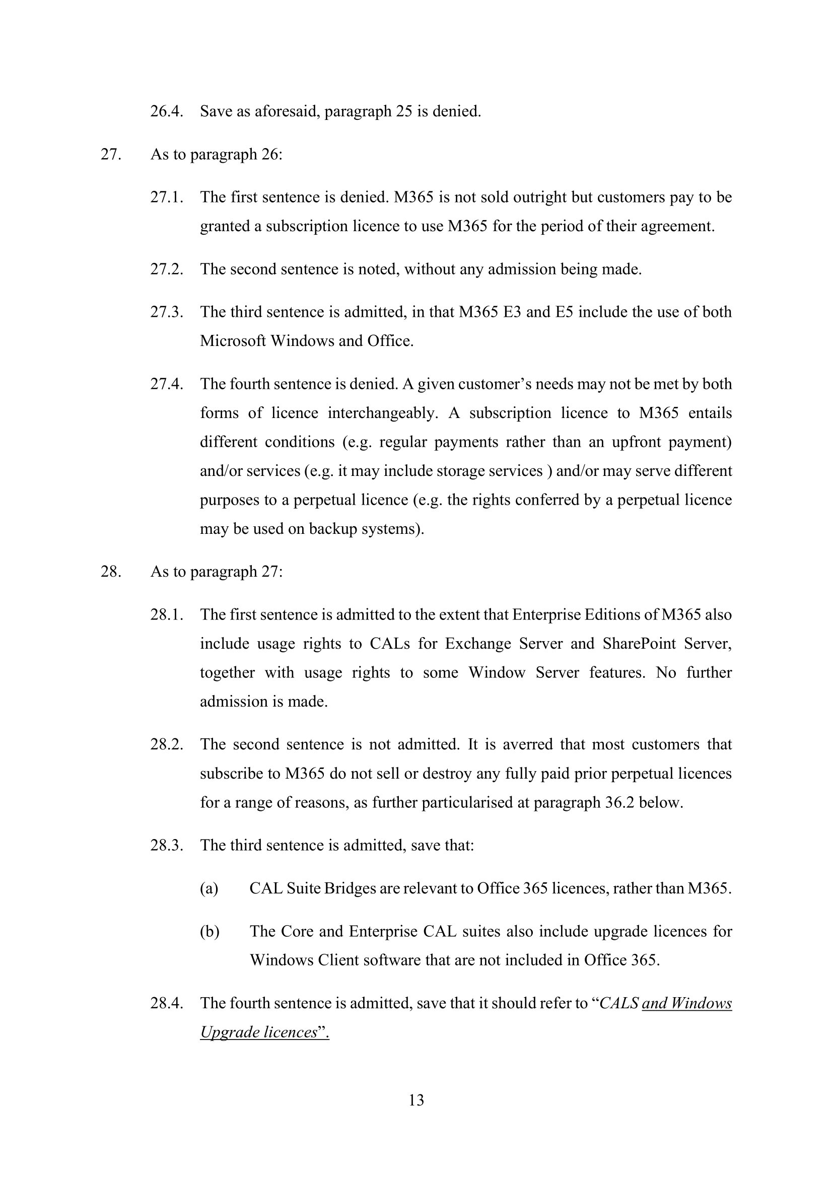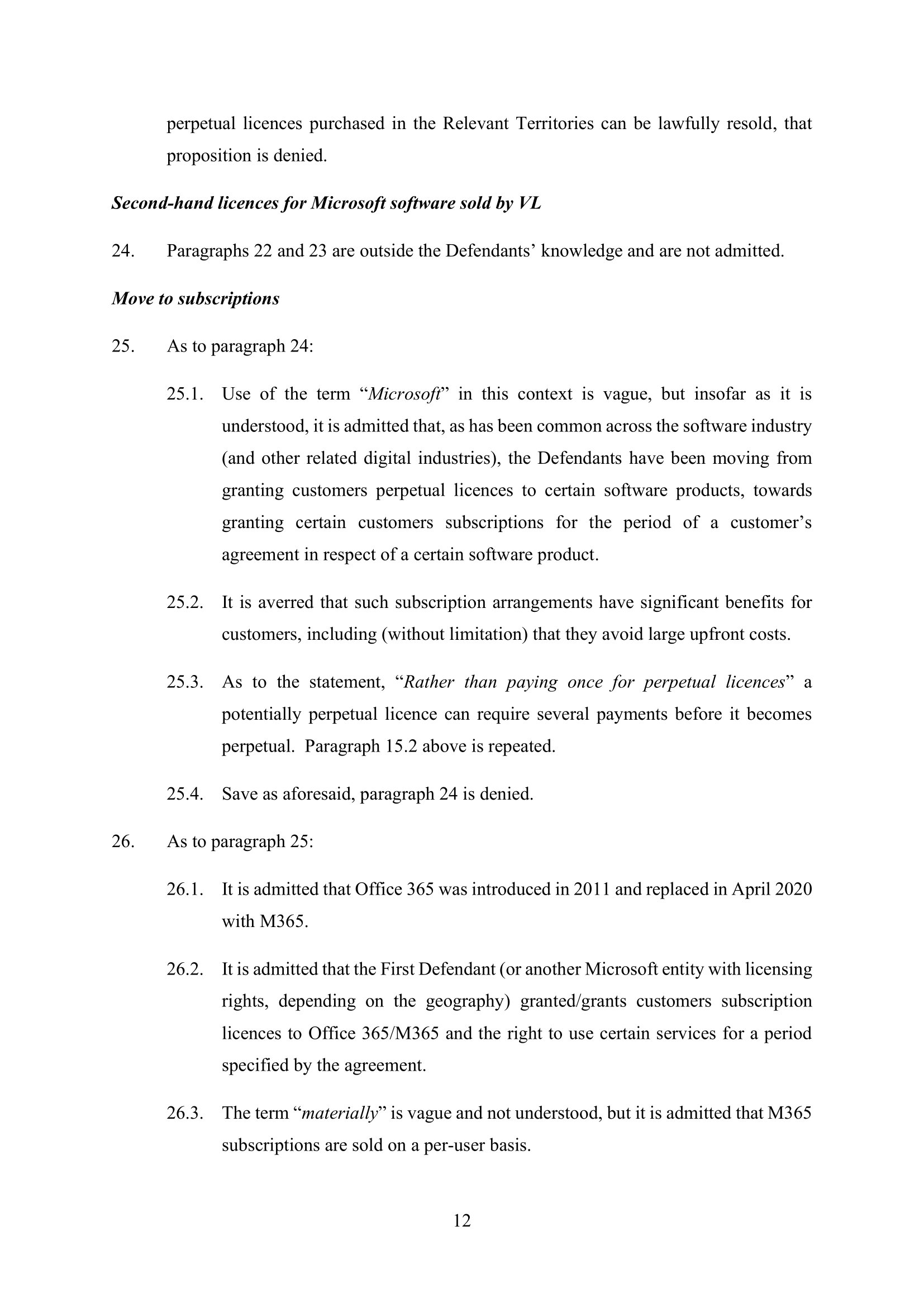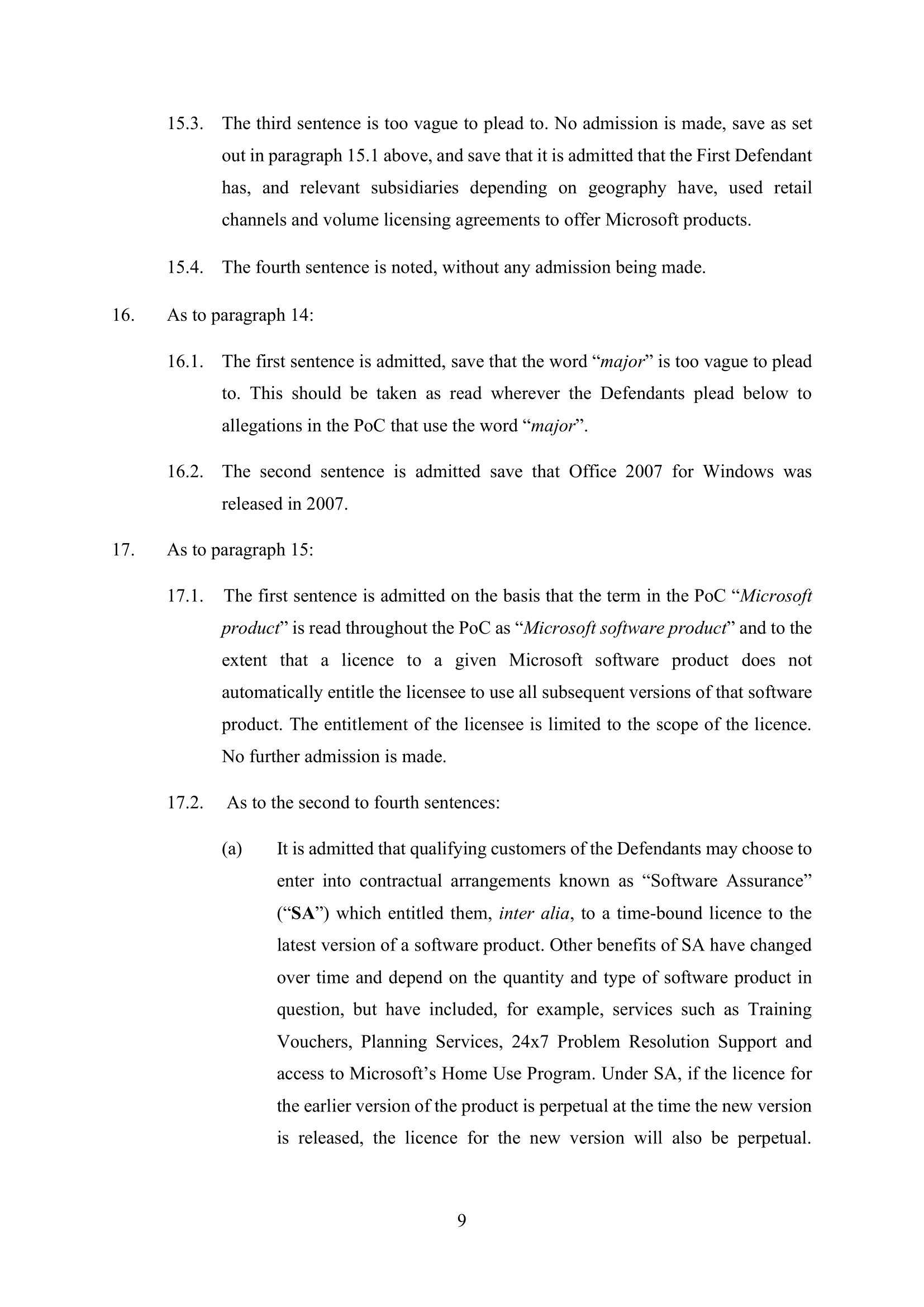 Microsoft Amended Defence