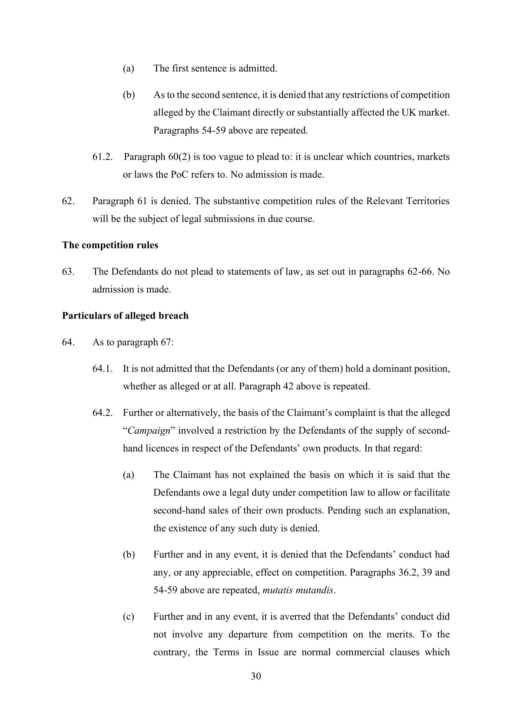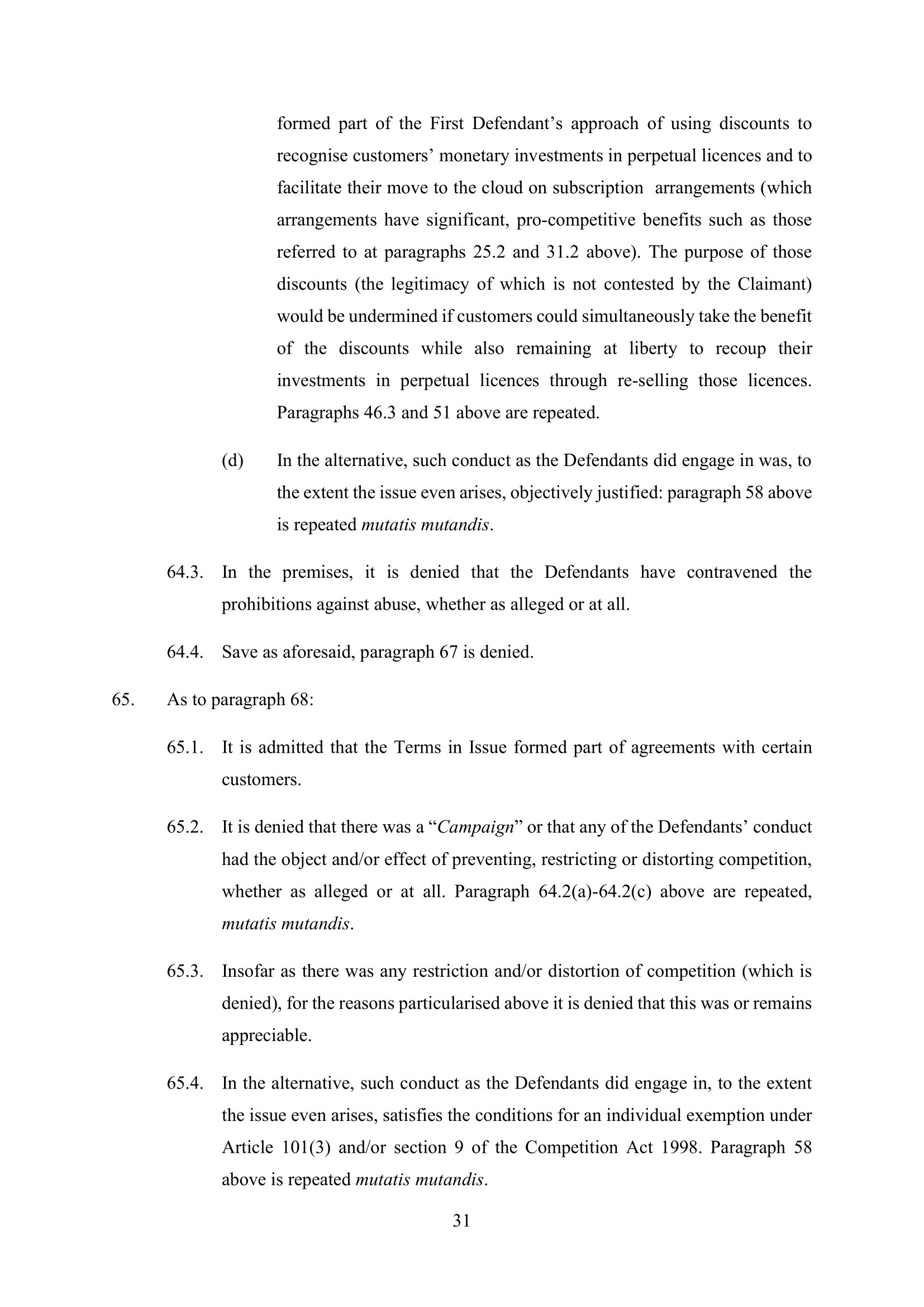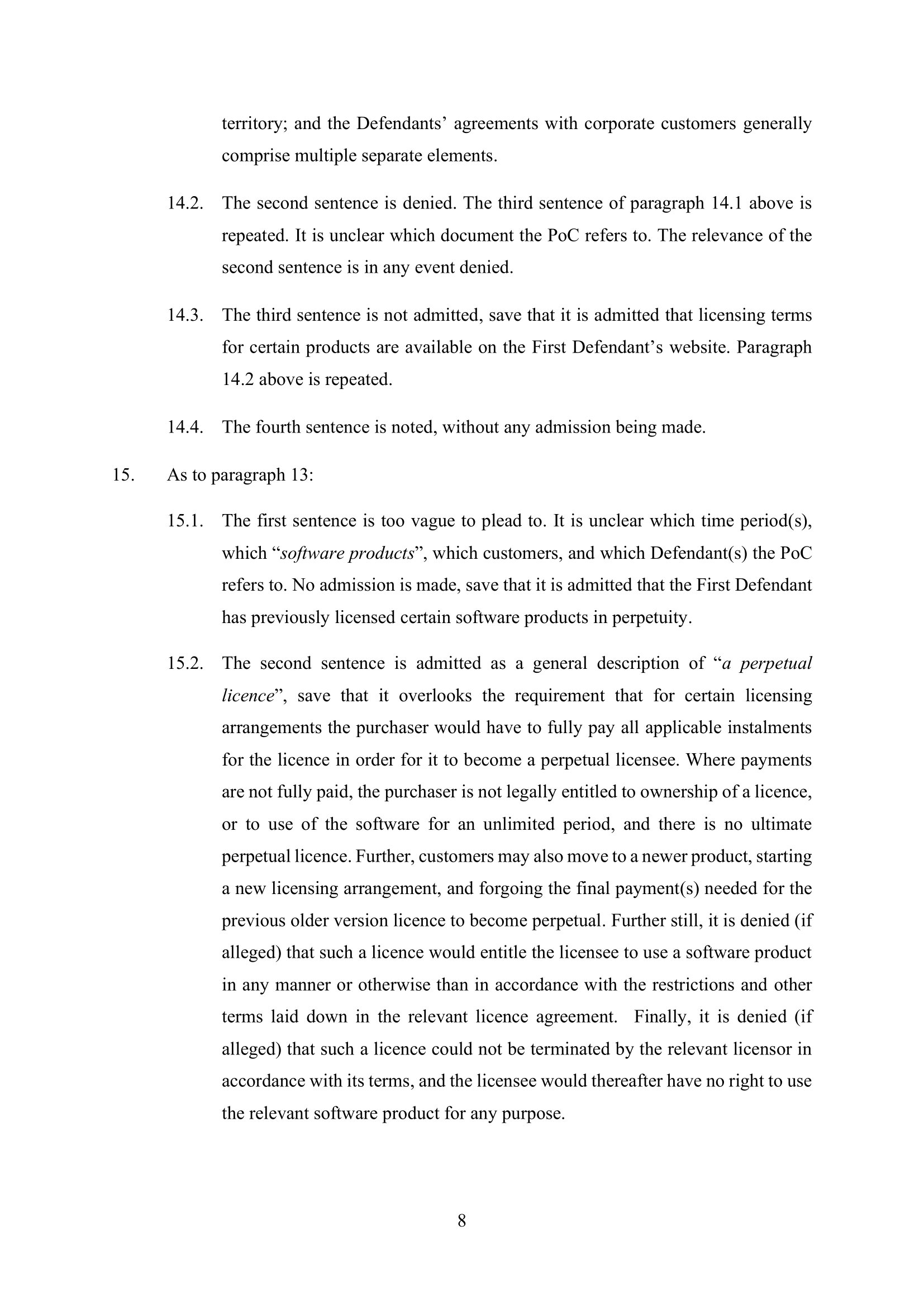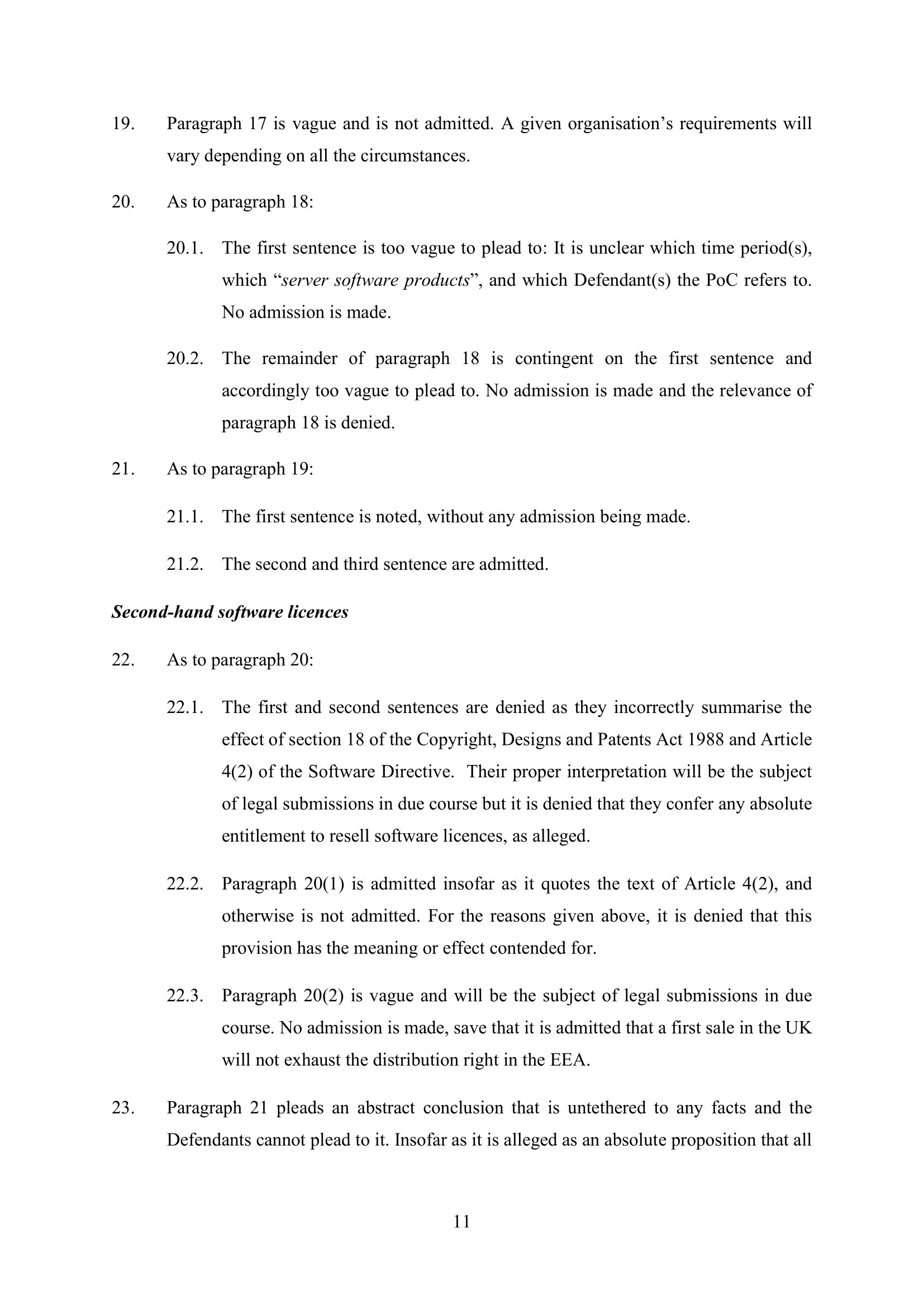 Microsoft Amended Defence