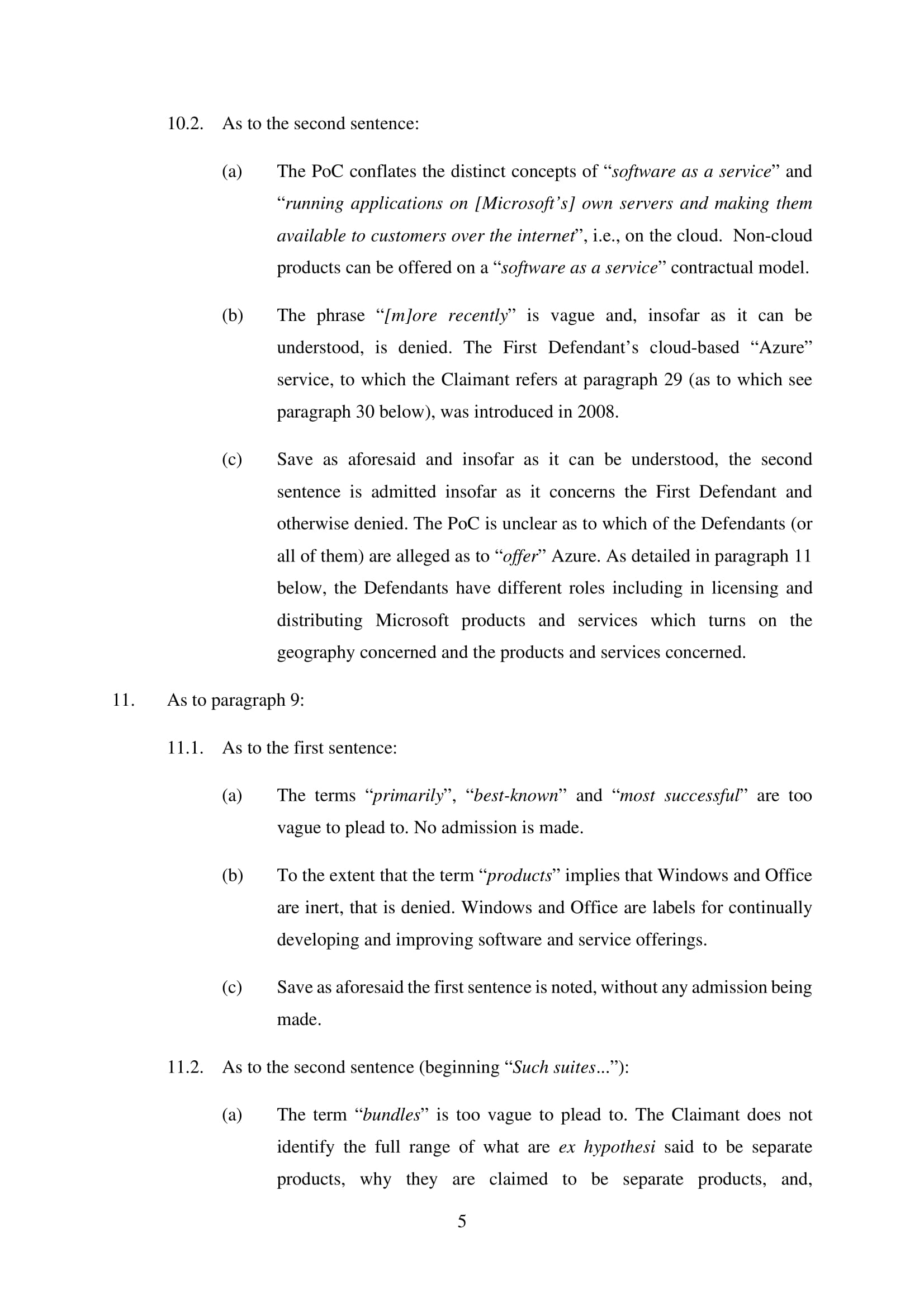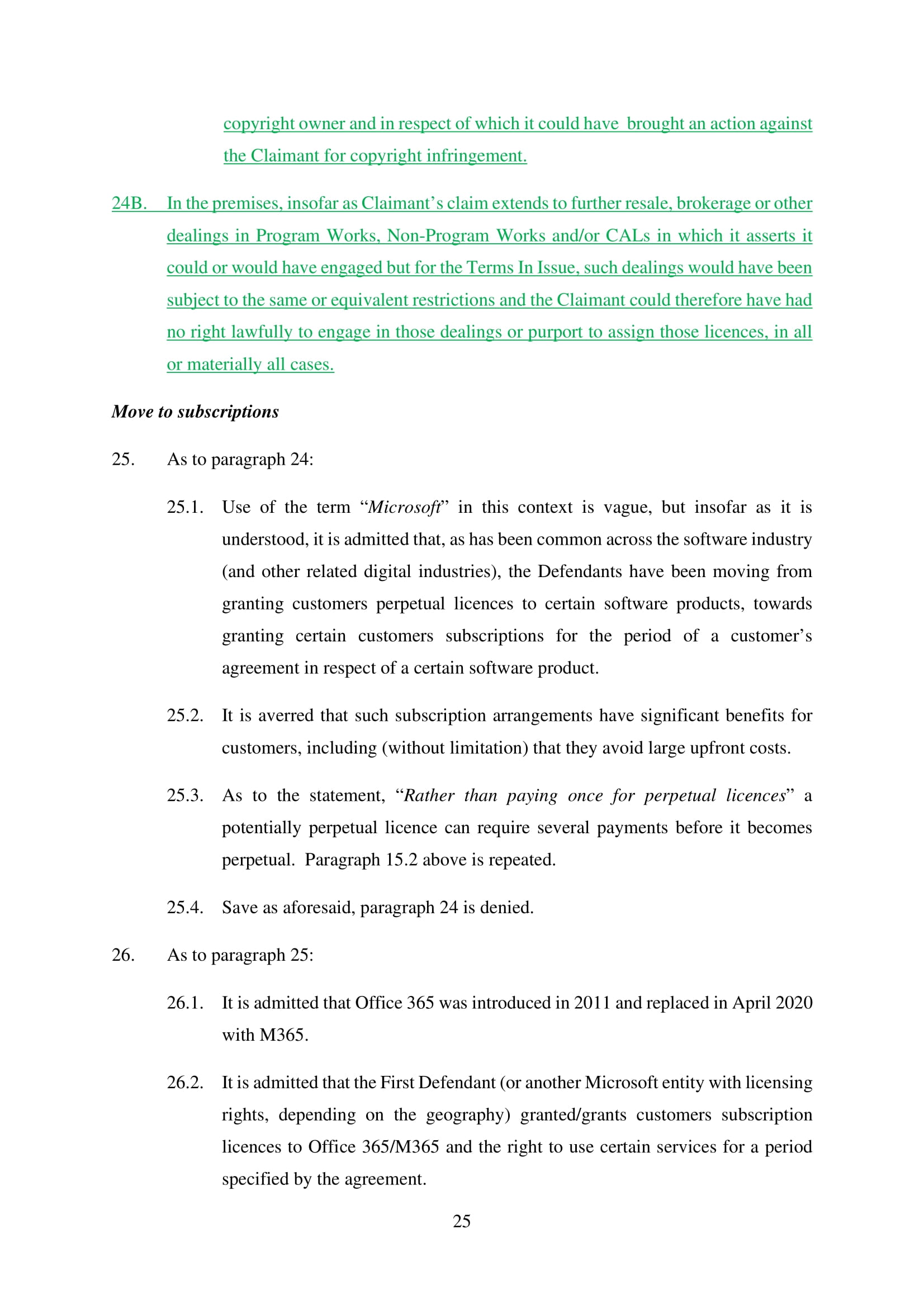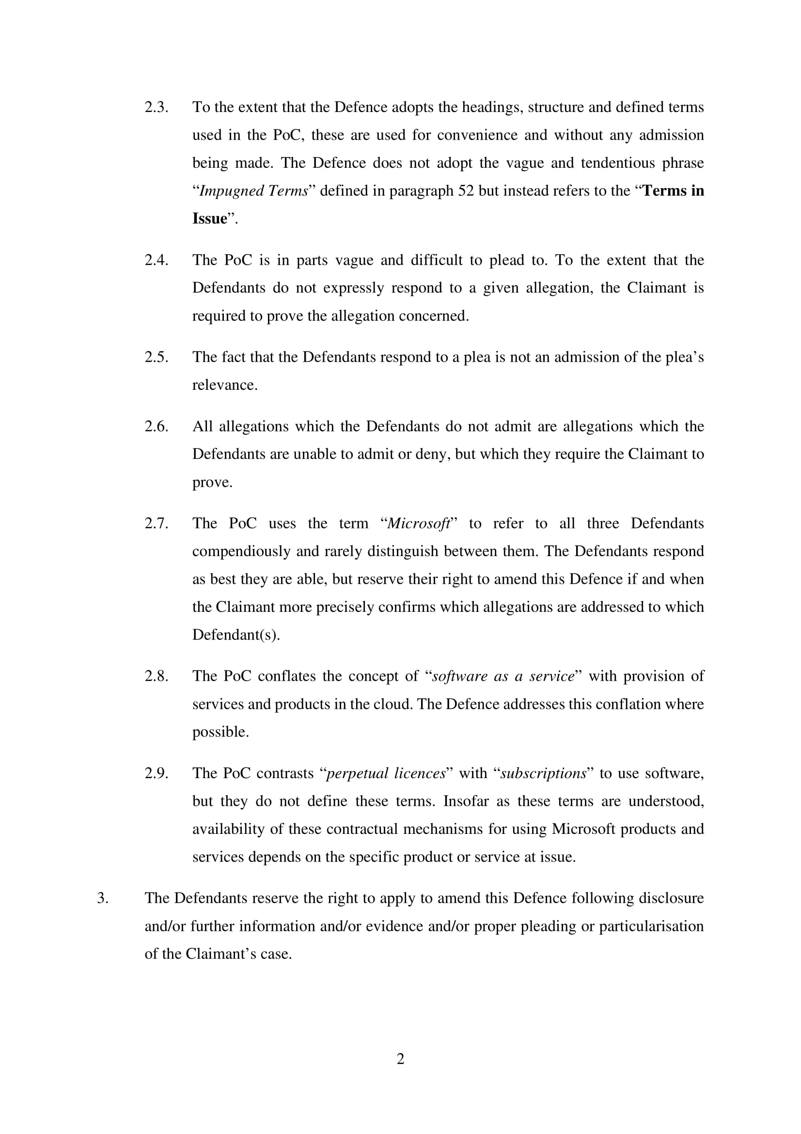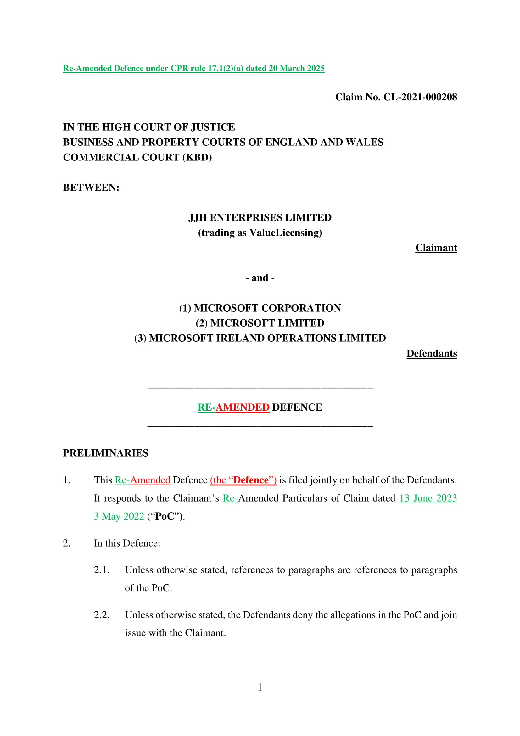Microsoft Corporation, Microsoft Limited and Microsoft Ireland Operations Limited have amended their Defence on 20th March 2025. Claim No. CL-2021-000208