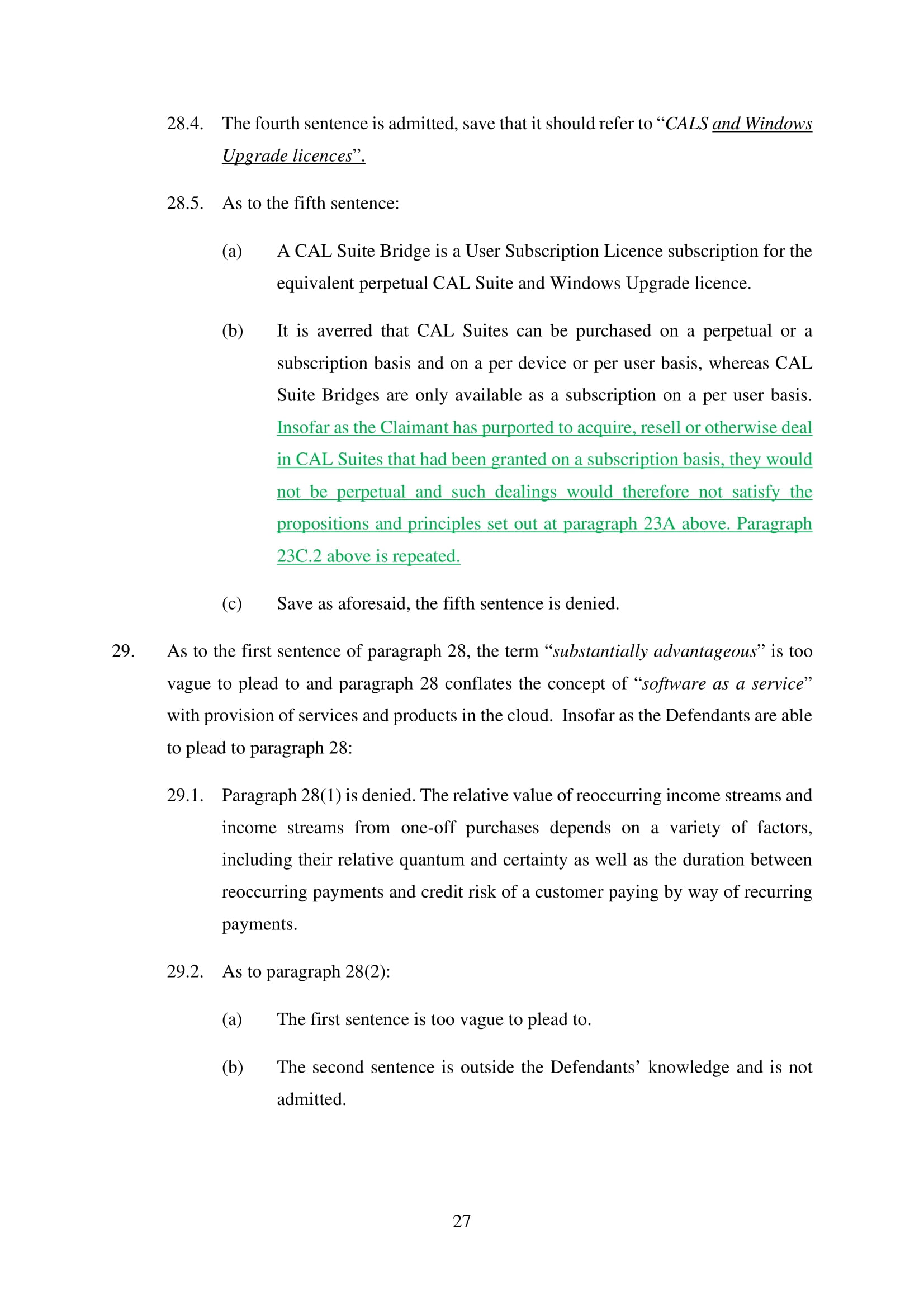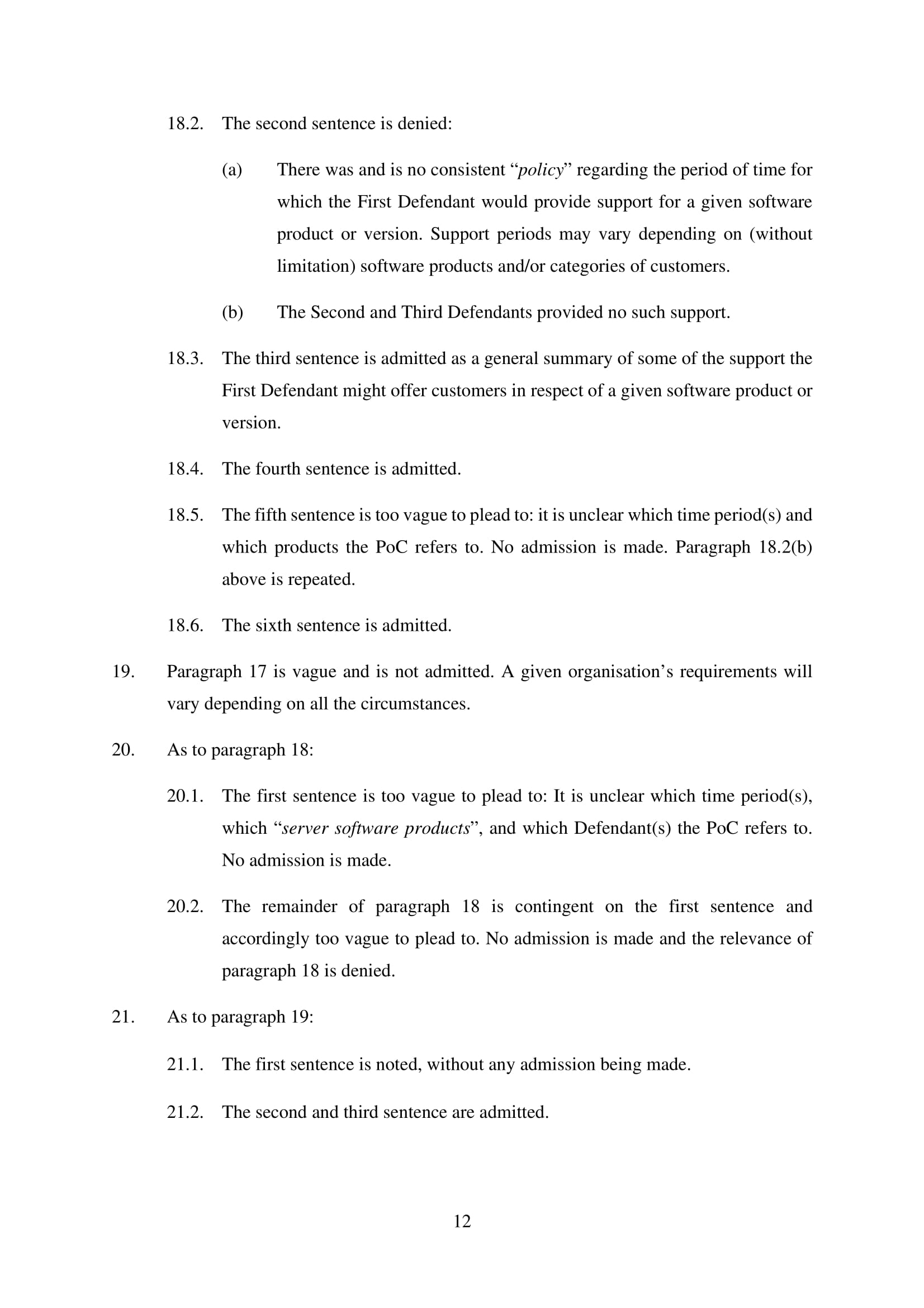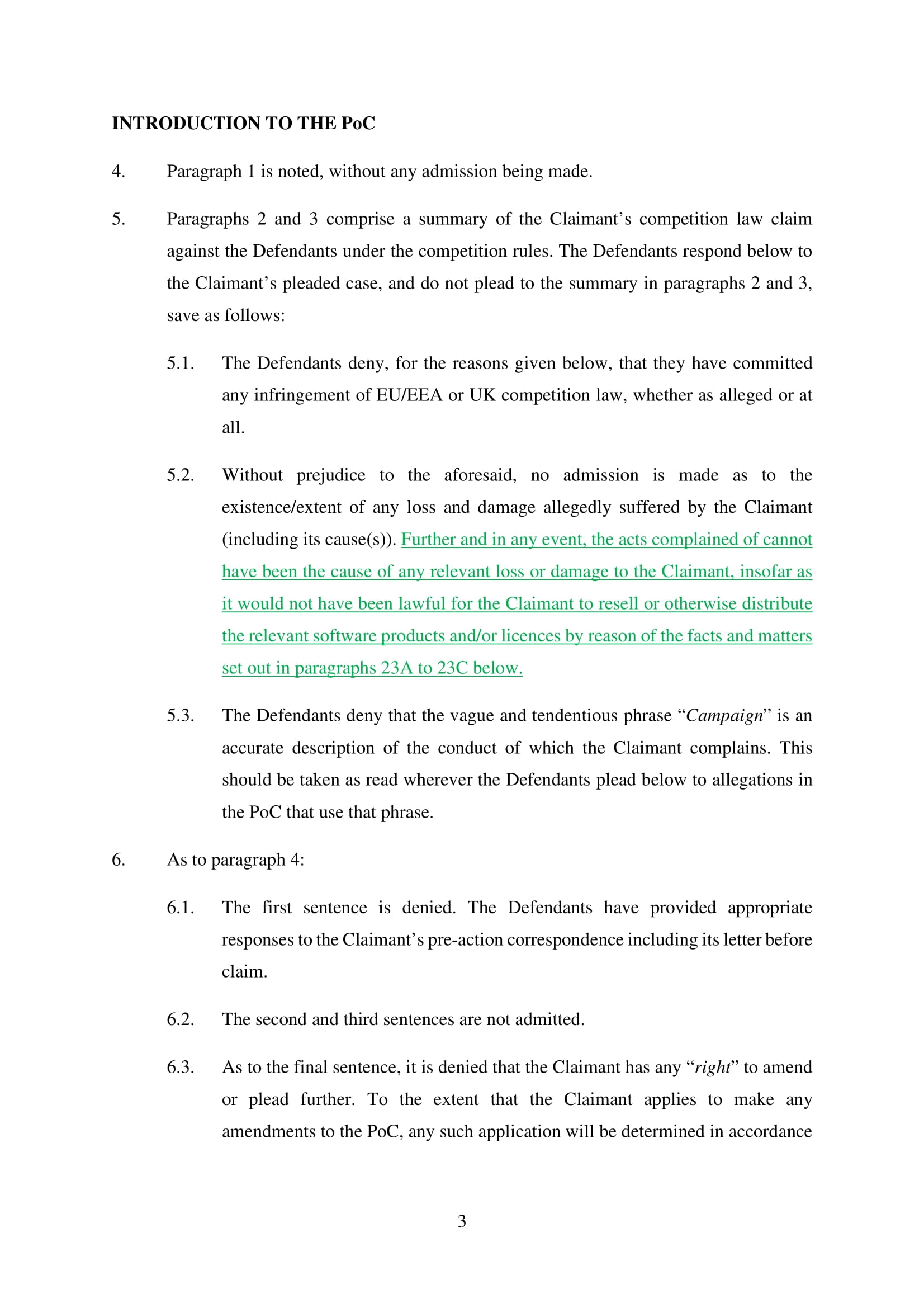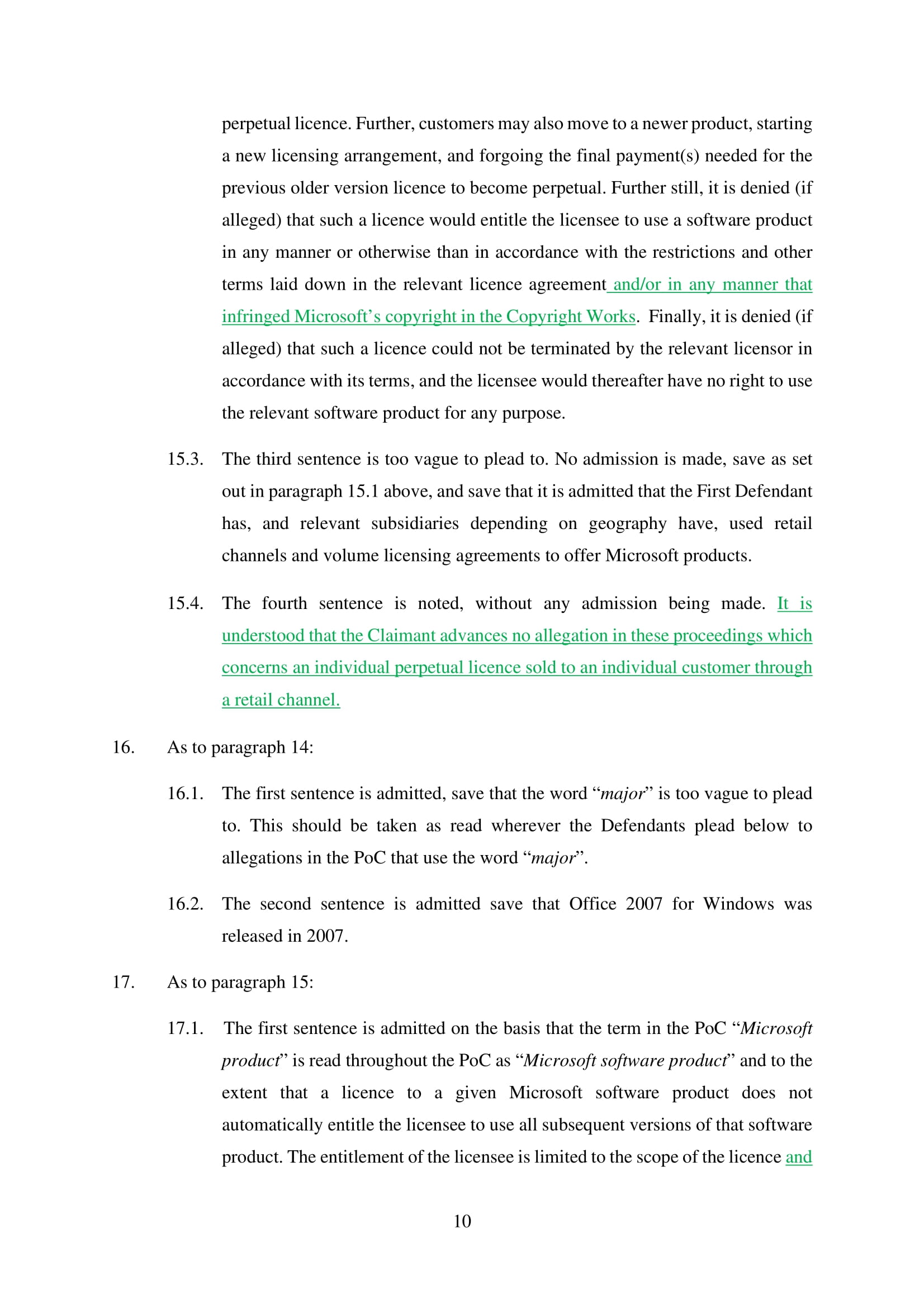 Microsoft Corporation, Microsoft Limited and Microsoft Ireland Operations Limited have amended their Defence on 20th March 2025. Claim No. CL-2021-000208
