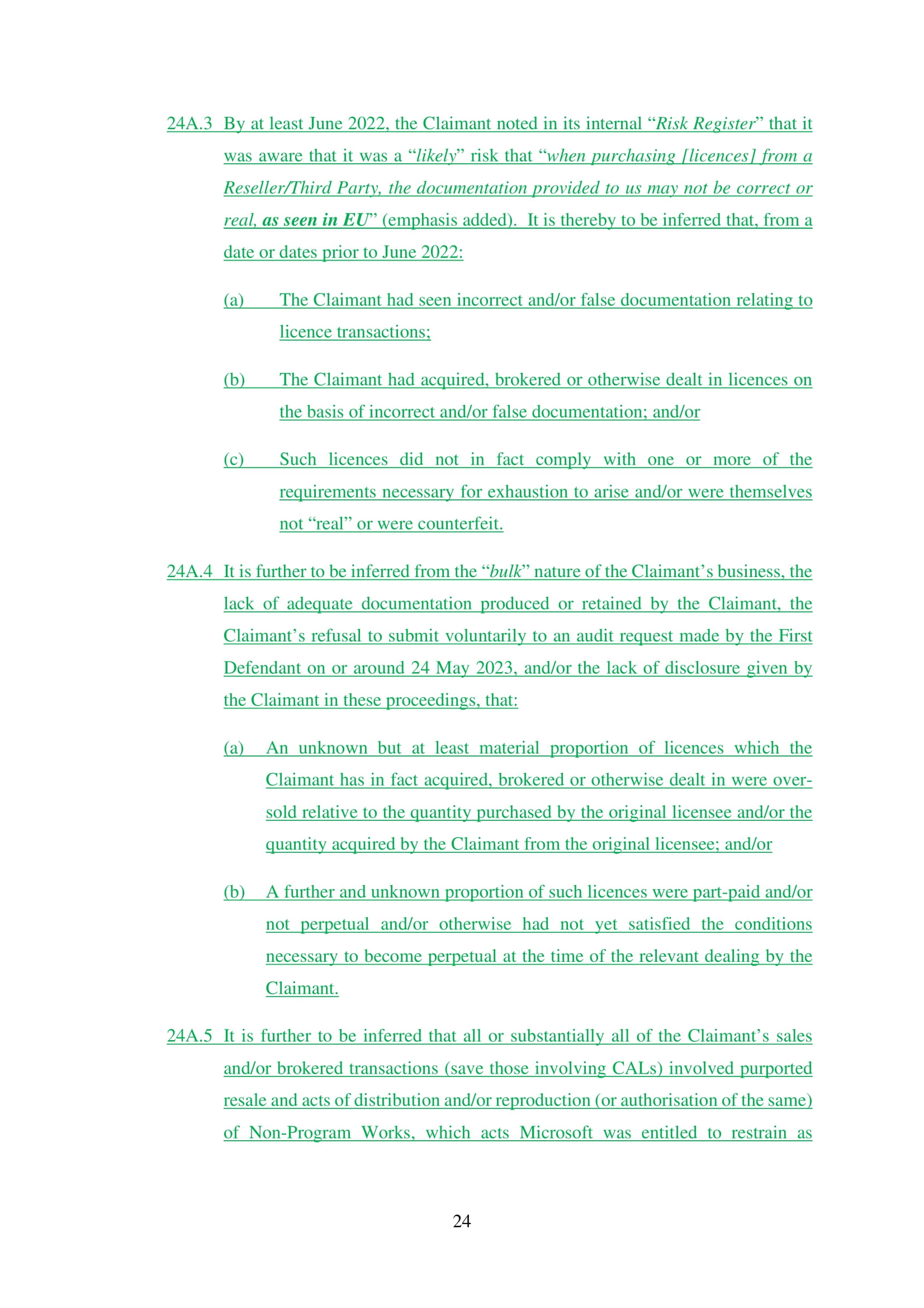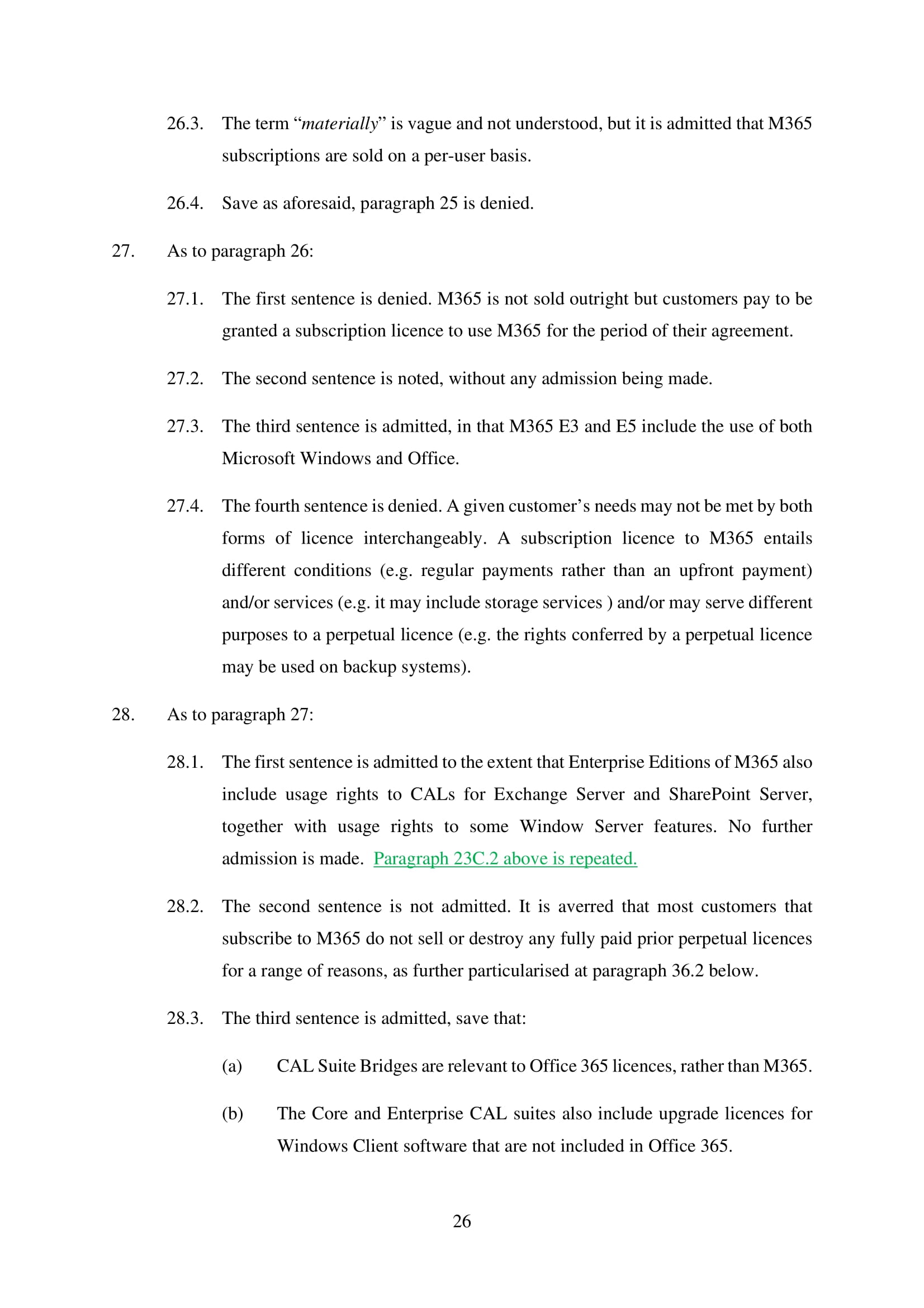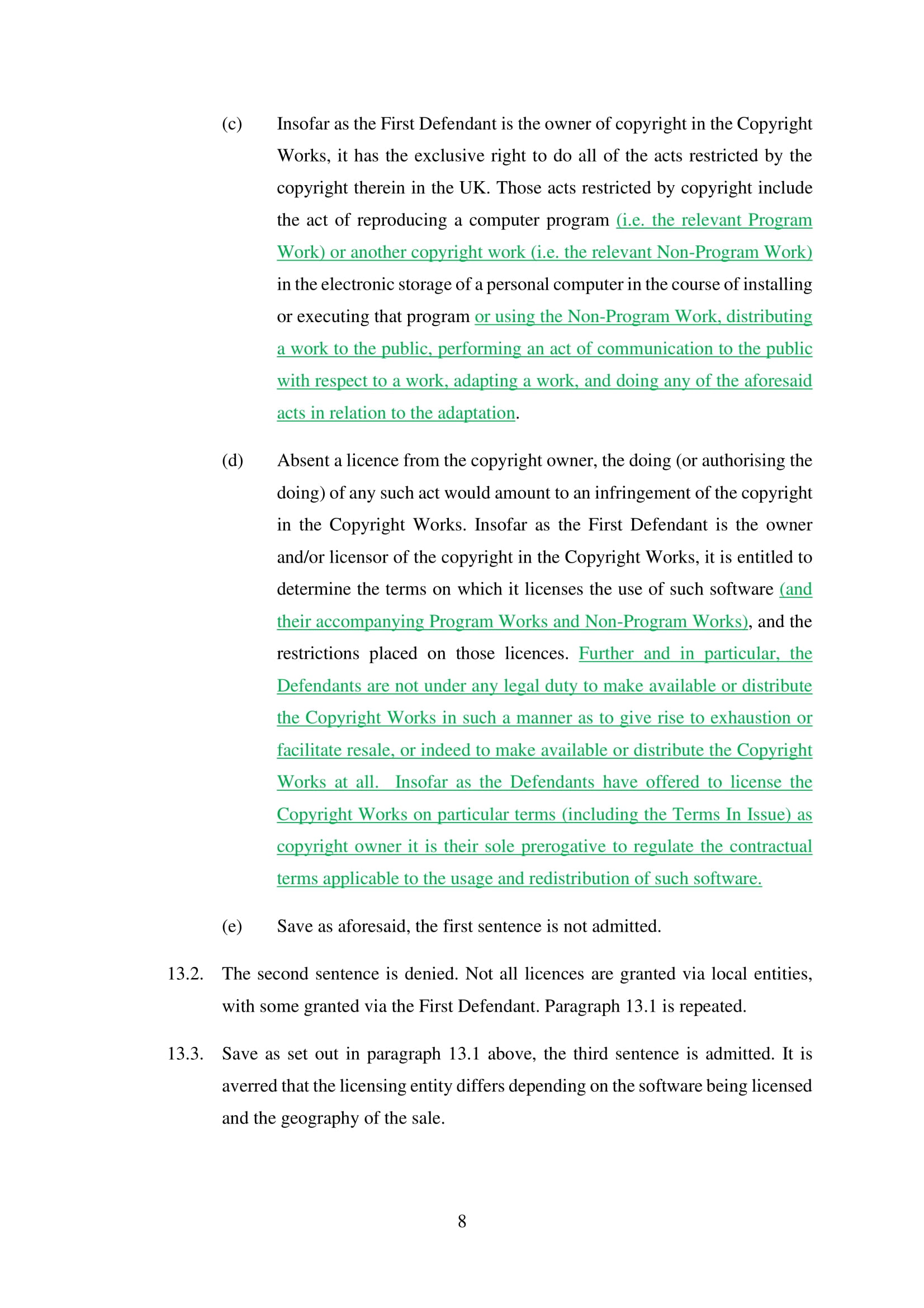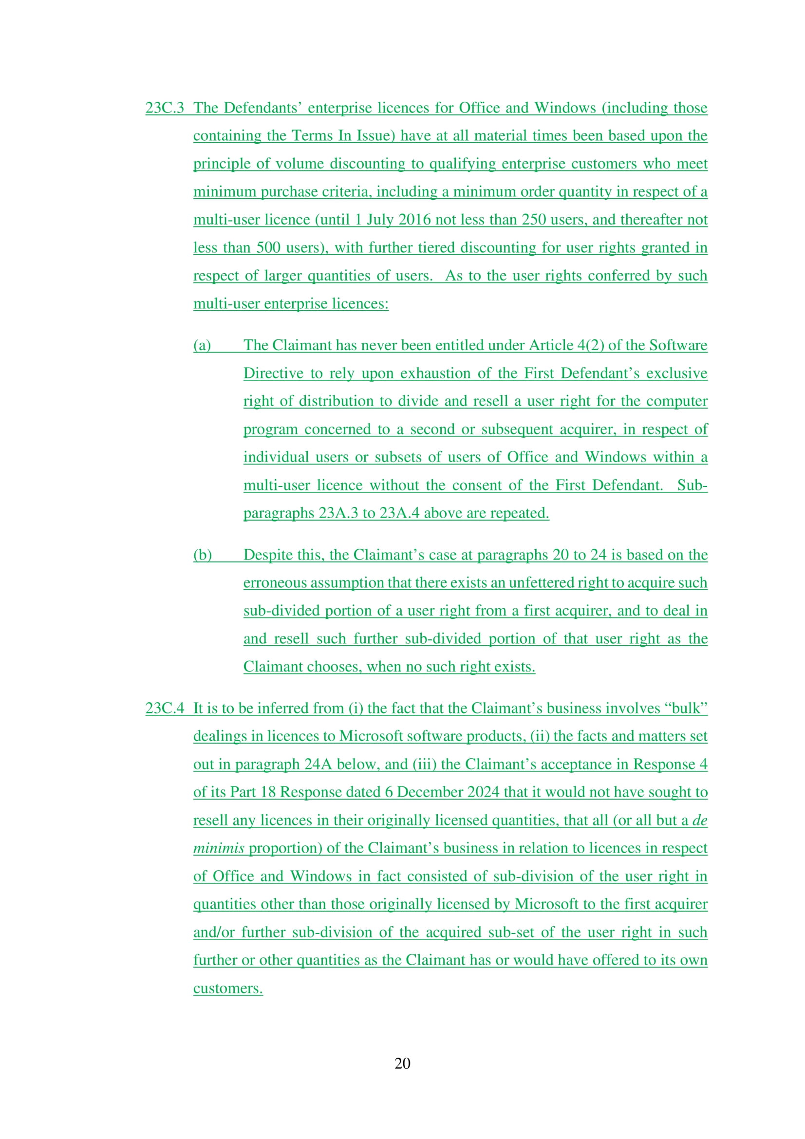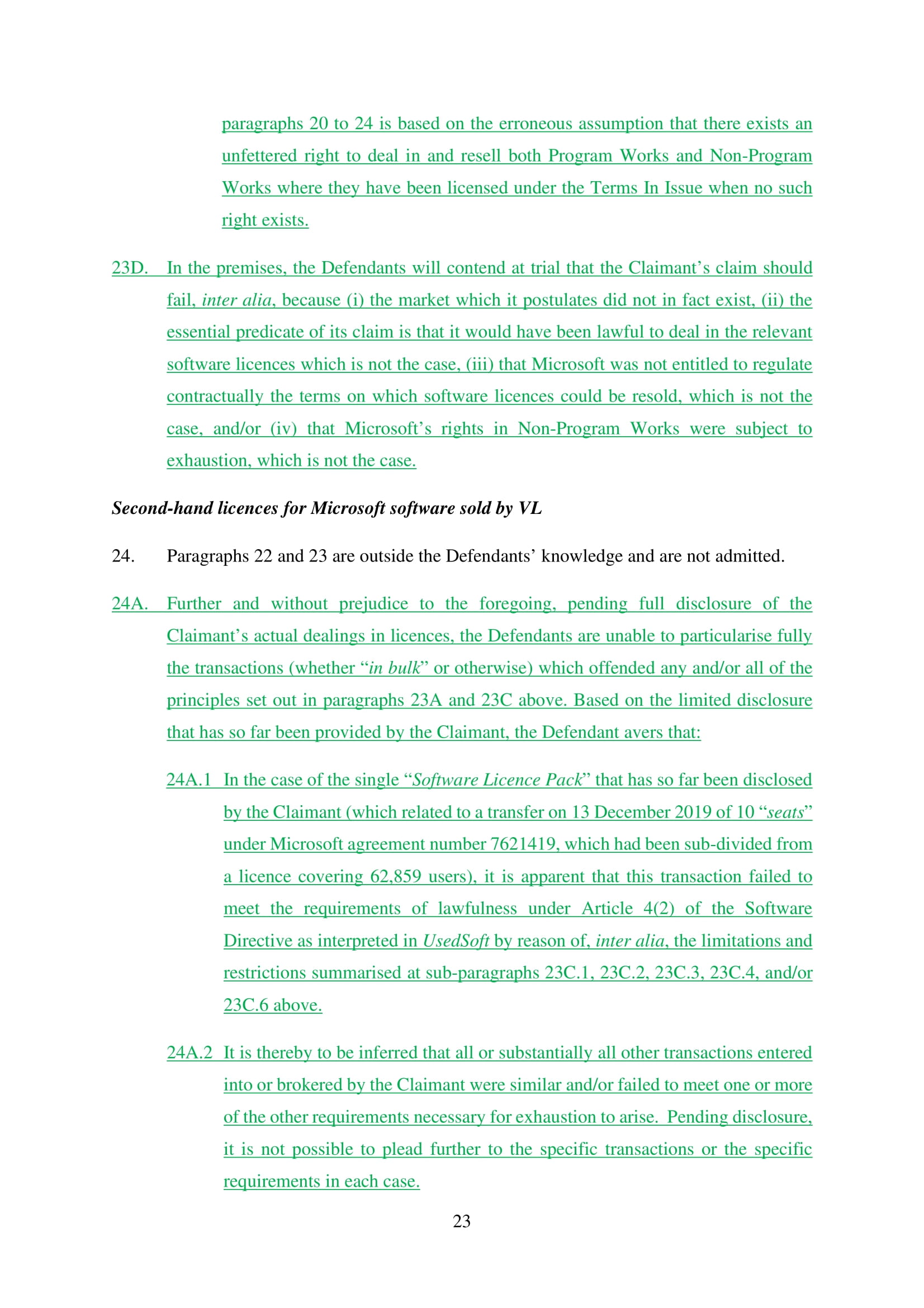 Microsoft Corporation, Microsoft Limited and Microsoft Ireland Operations Limited have amended their Defence on 20th March 2025. Claim No. CL-2021-000208