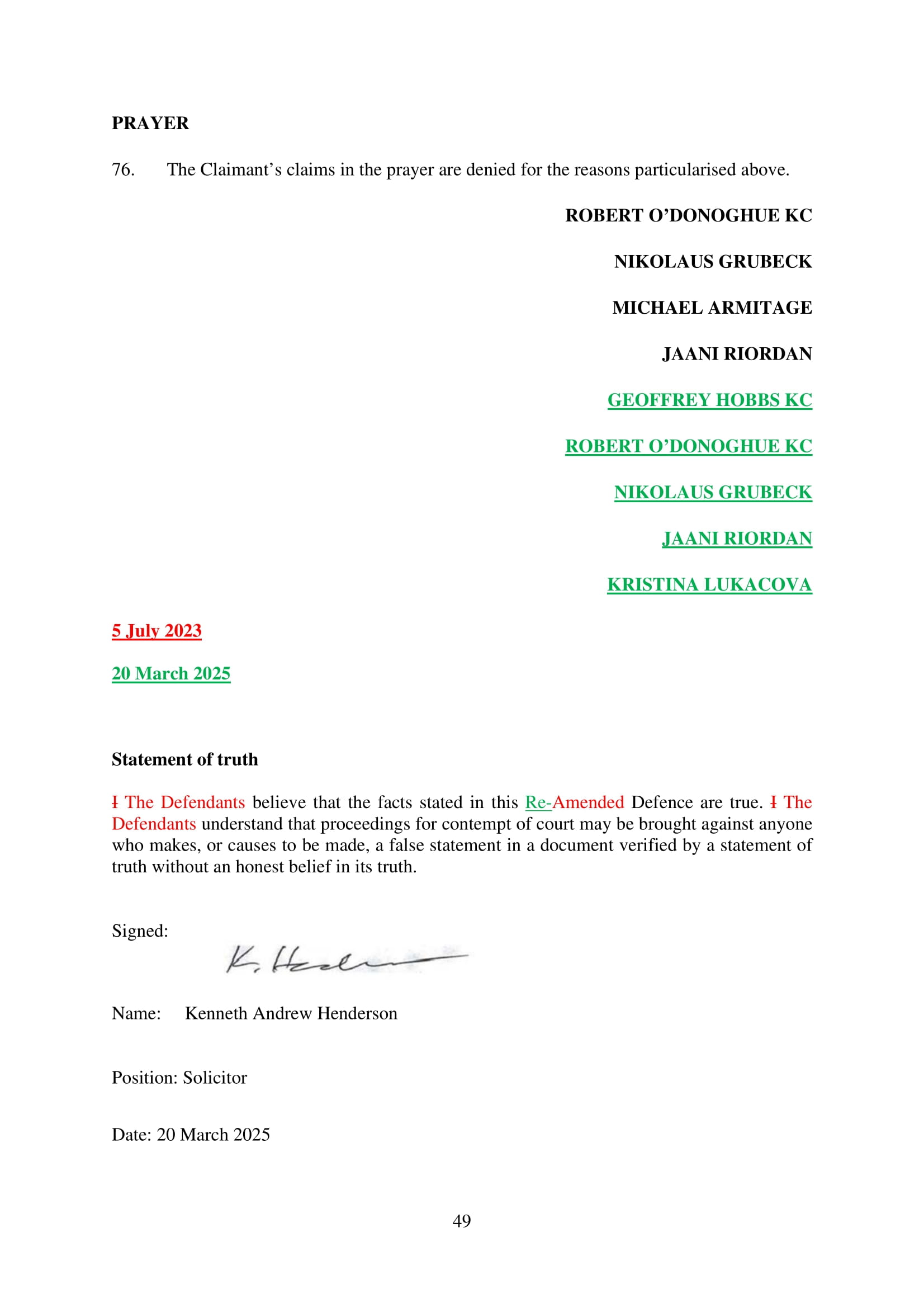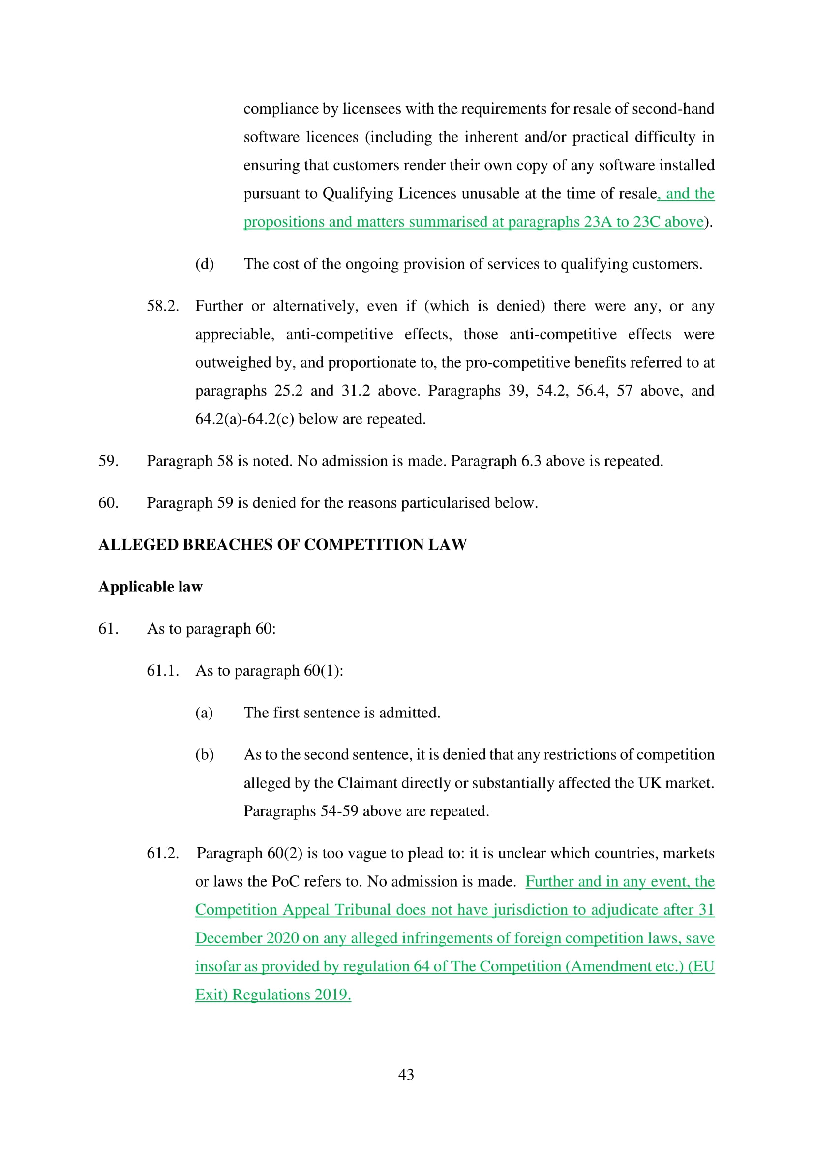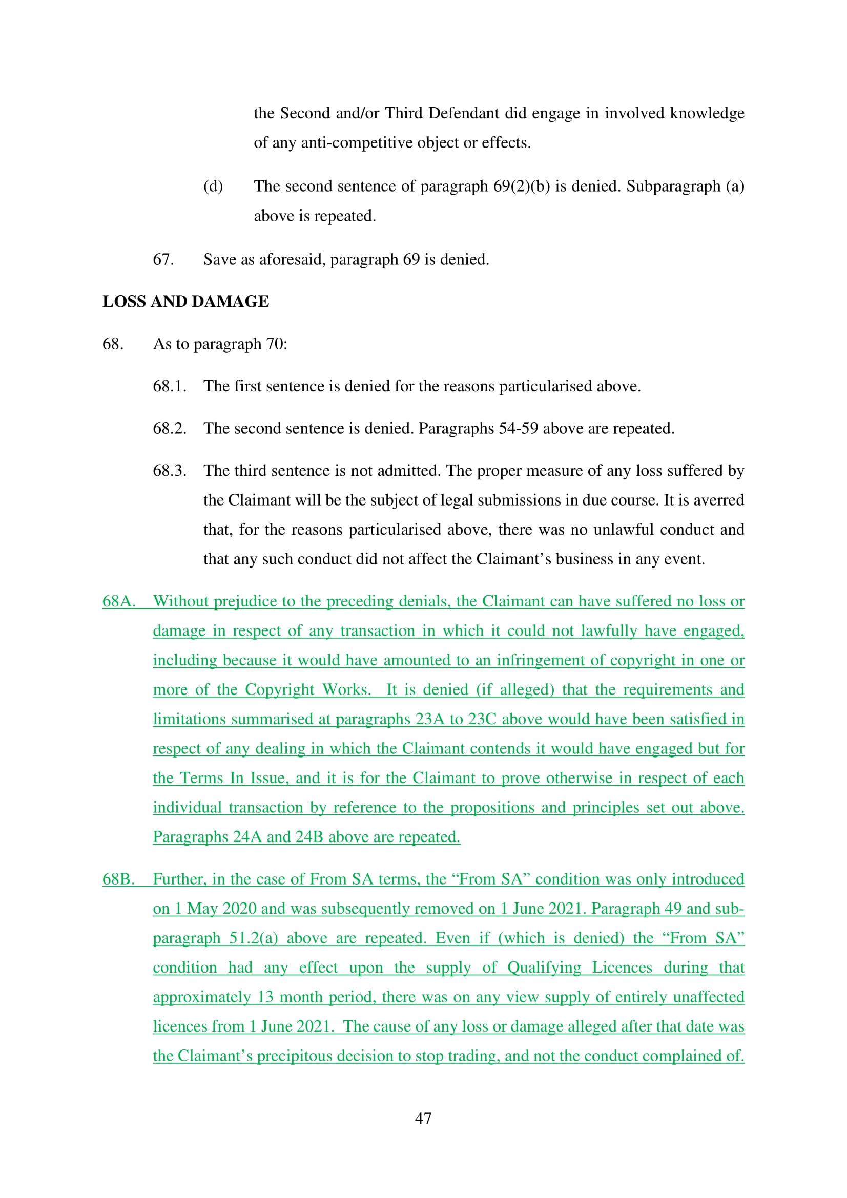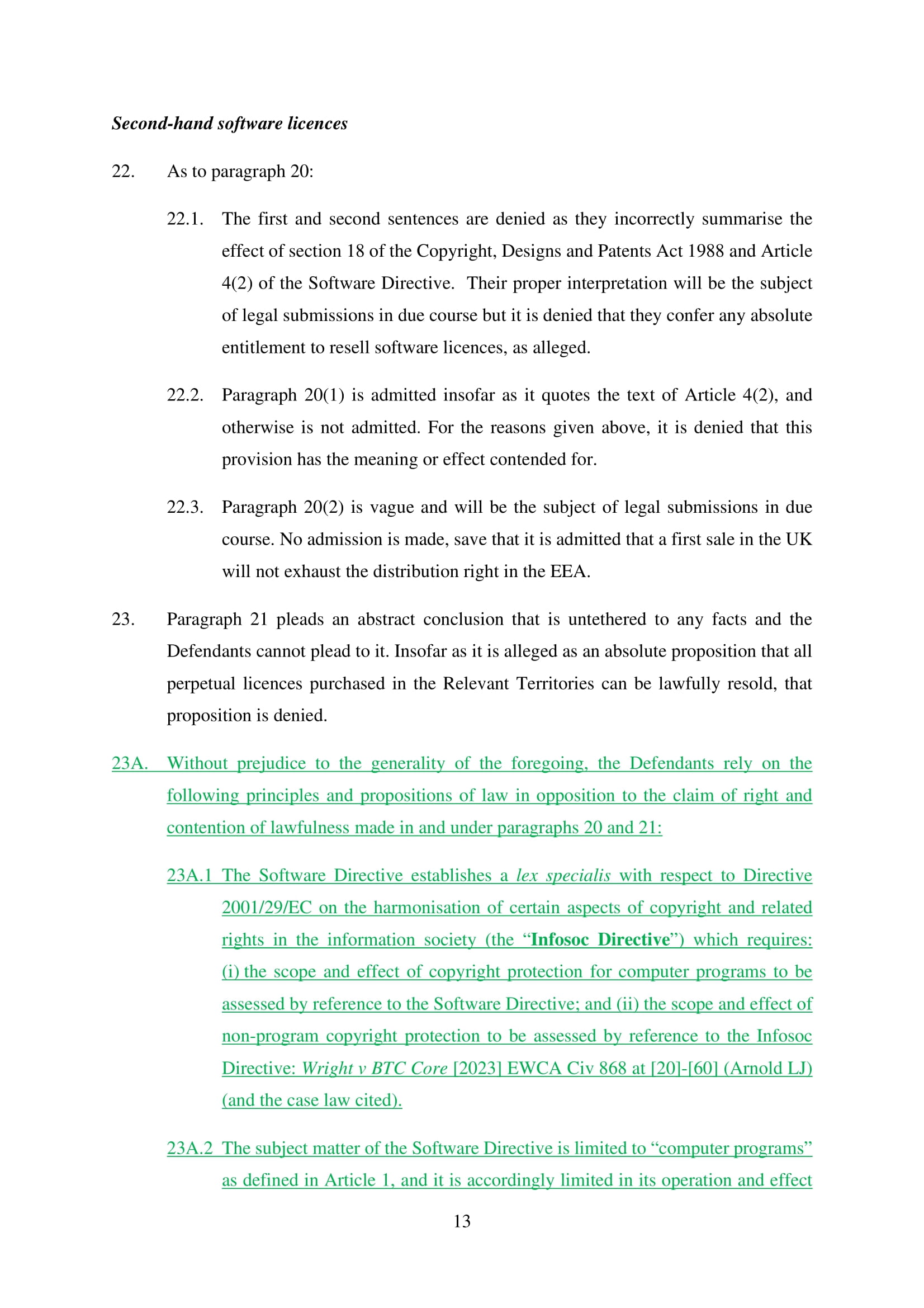 Microsoft Corporation, Microsoft Limited and Microsoft Ireland Operations Limited have amended their Defence on 20th March 2025. Claim No. CL-2021-000208
