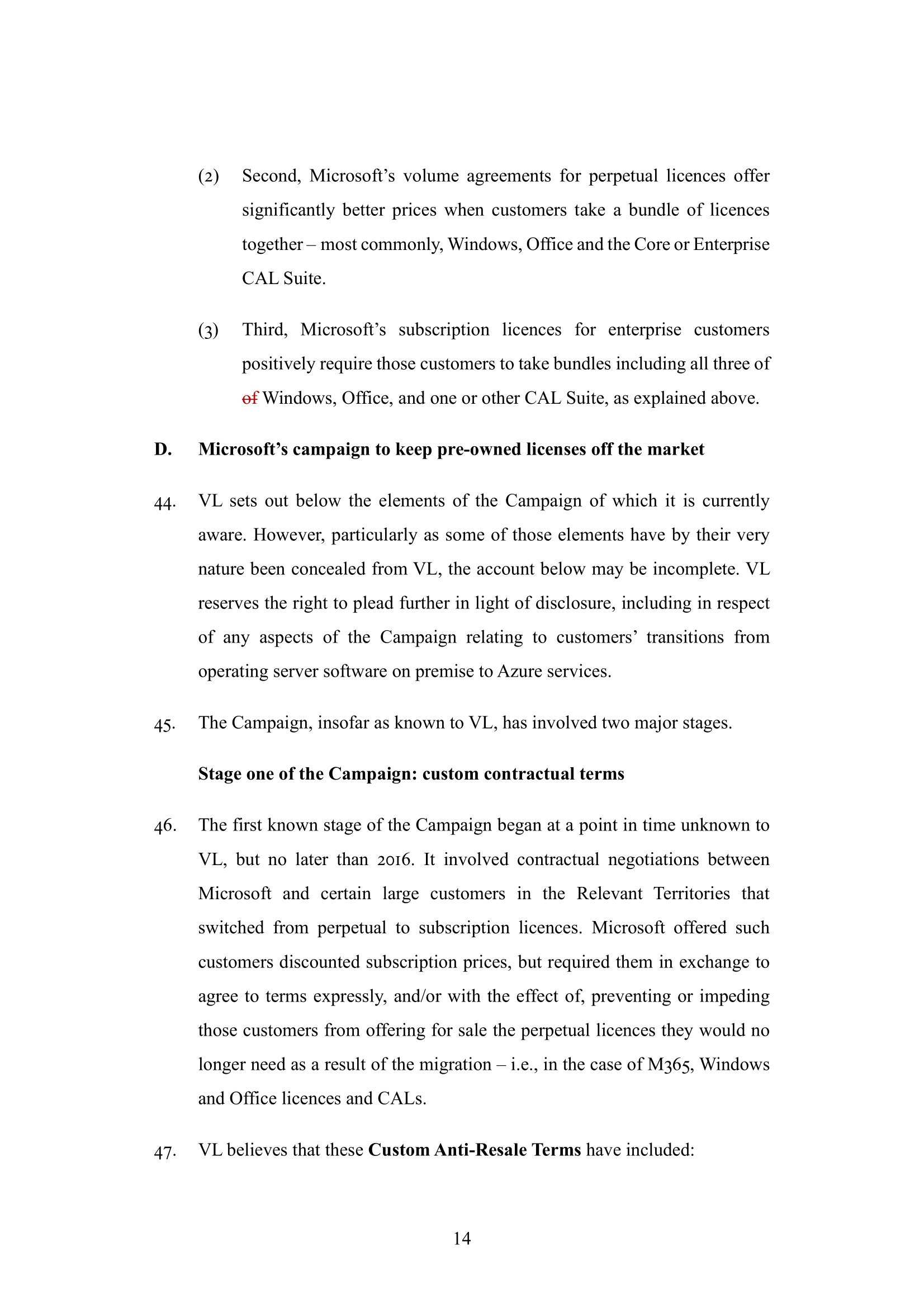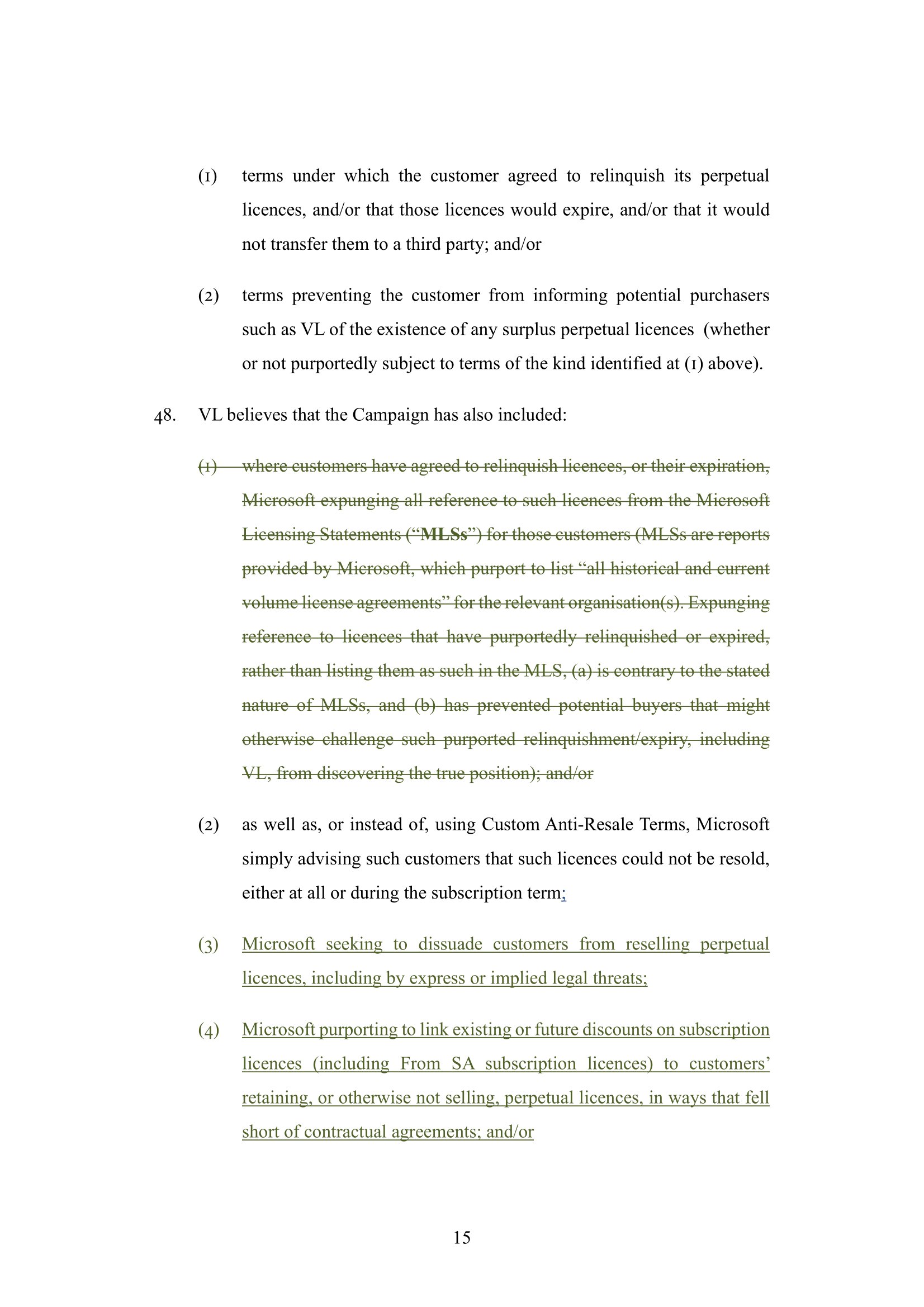 Following the consent order the Particulars of Claim have been re-amended to reflect the fact the claimant no longer pursues the allegation made at paragraph 48(1); and (b) include those additional matters relating to paragraph 48(2) of the Amended Particulars of Claim that are referred to in the Claimant’s response dated 19 May 2023 to the Defendant’s Request for Information dated 18 April 2023.